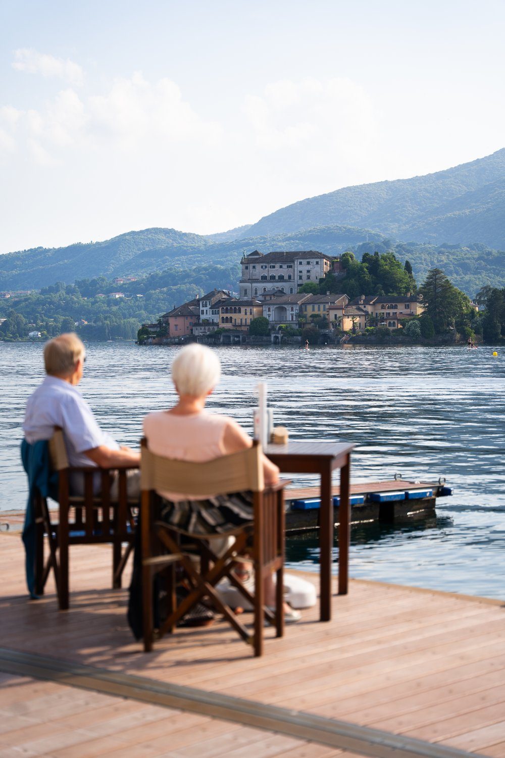 L’Hotel dispone anche di un raffinato ed accogliente lounge-bar con con due terrazza fronte lago prospiciente l’Isola di San Giulio di cui una galleggiante dove farsi cullare dalle acque del lago mentre si sorseggia un cocktail speciale preparato dai nostri bartender. Location, che diventa più romantica alla sera, quando gli Ospiti, possono gustare i loro drink in completo relax sui divani in pelle e potranno farsi incantare dall’alone fiabesco che avvolge l’Isola di San Giulio o farsi coccolare dal tremolio della fiamma del camino.